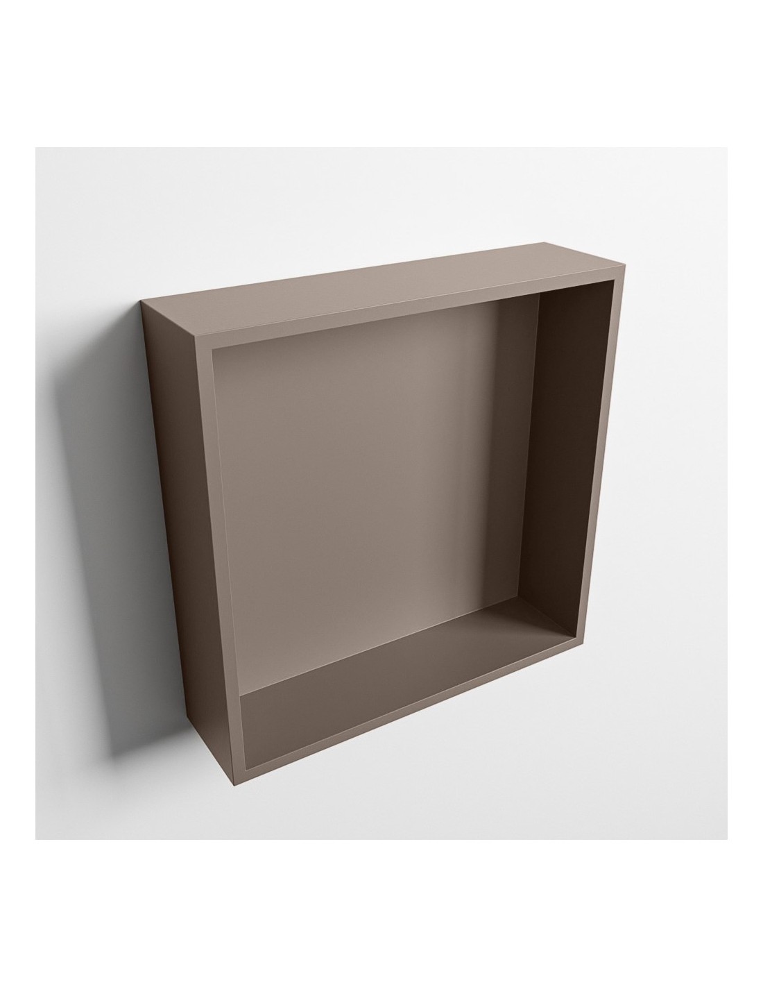 EASY hylde til badeværelset, udført i et moderne og stilrent design i det solide materiale "Solid Surface", der ikke alene giver badeværelset et stilrent design, men samtidig er lækkert at røre ved. Hylden kan enten monteres direkte på væggen, eller indbygges. Hylden måler 29,5 x 29,5 cm i højde og bredde (ydermål).