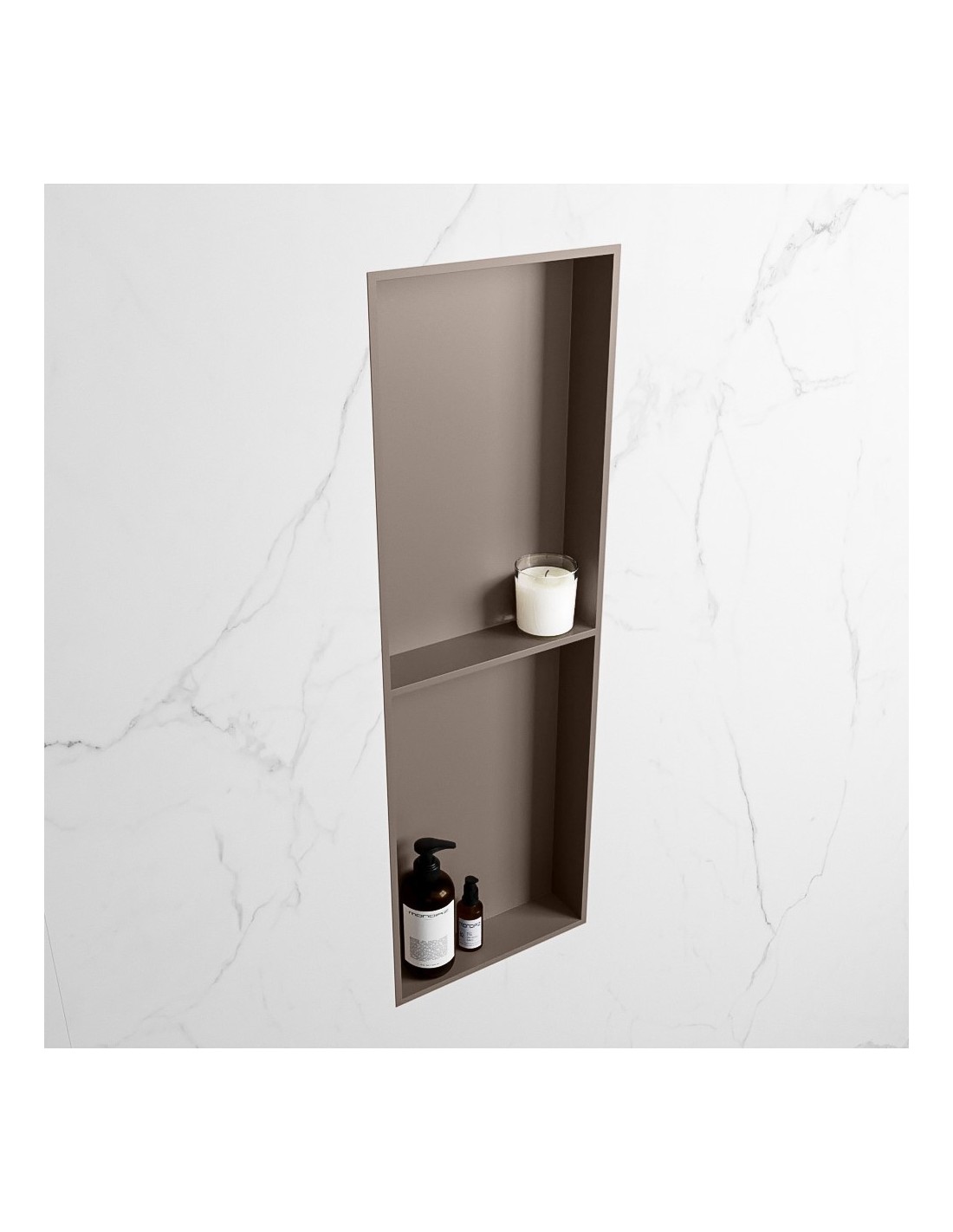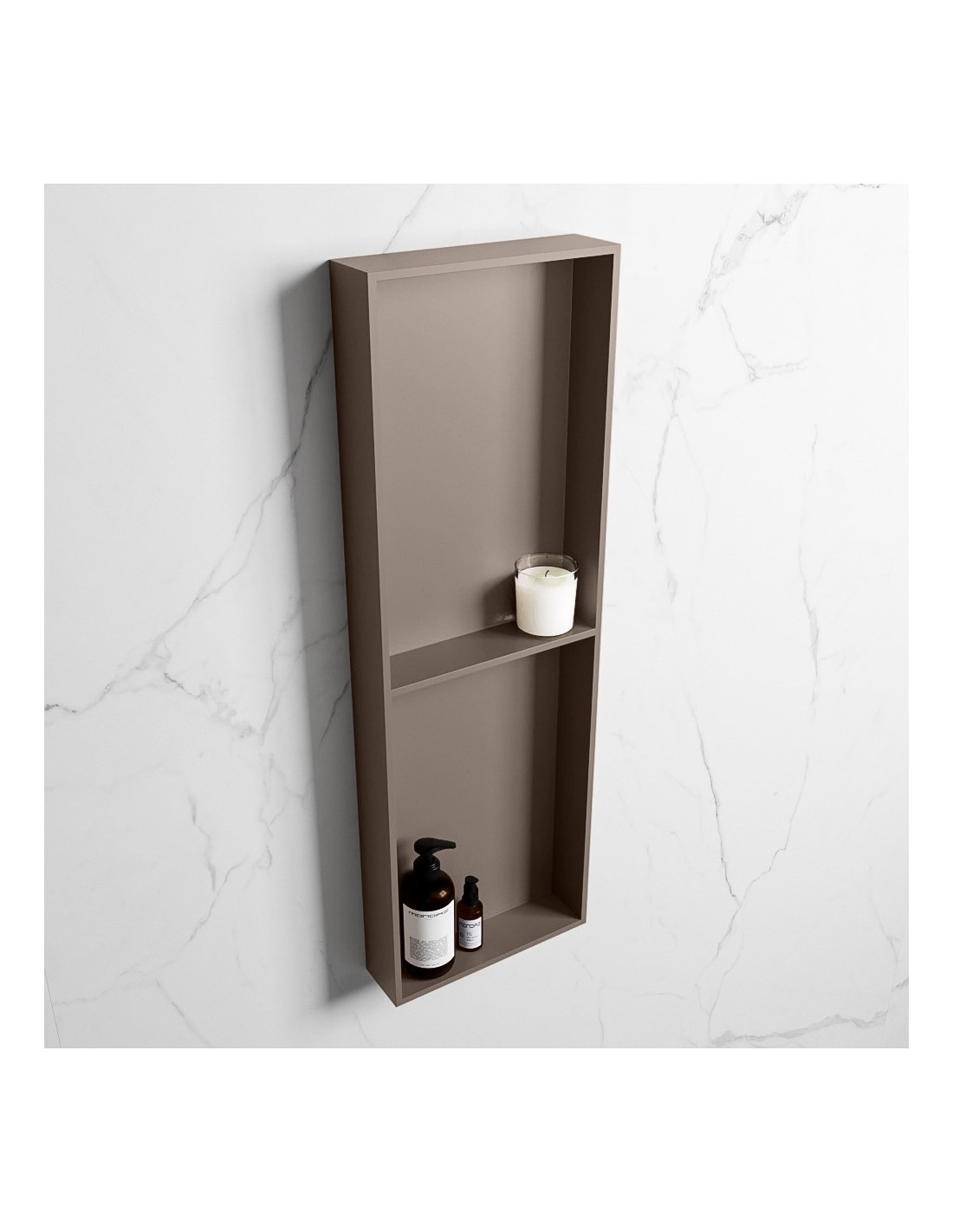 EASY hylde til badeværelset, udført i et moderne og stilrent design i det solide materiale "Solid Surface", der ikke alene giver badeværelset et stilrent design, men samtidig er lækkert at røre ved. Hylden kan enten monteres direkte på væggen, eller indbygges. Hylden måler 89,5 x 29,5 cm i højde og bredde (ydermål).