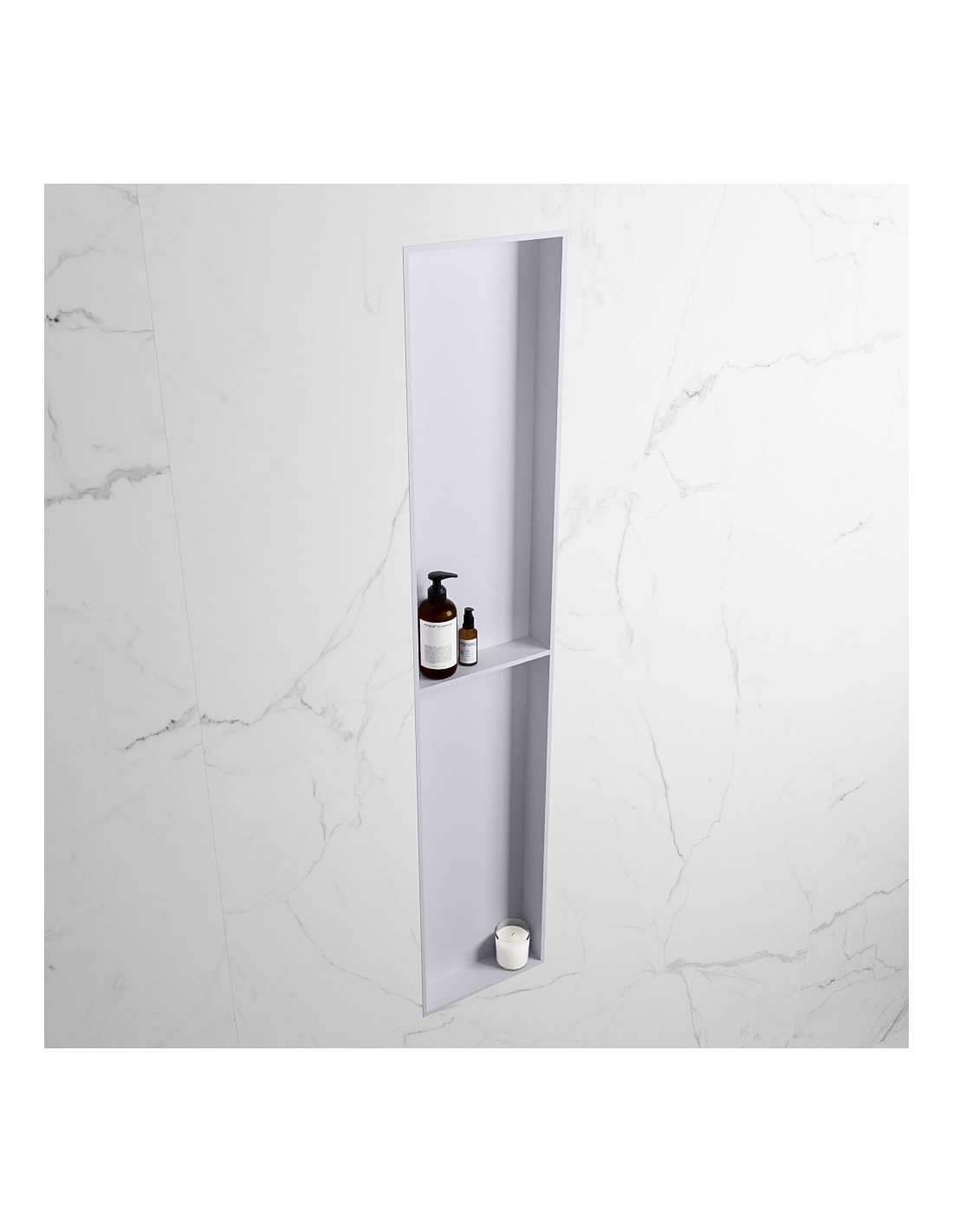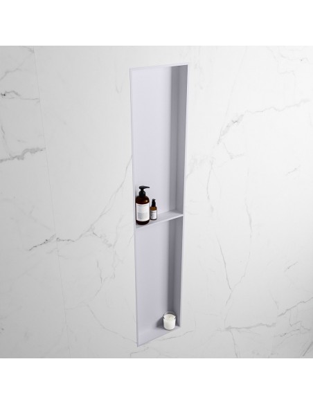 EASY hylde til badeværelset, udført i et moderne og stilrent design i det solide materiale "Solid Surface", der ikke alene giver badeværelset et stilrent design, men samtidig er lækkert at røre ved. Hylden kan enten monteres direkte på væggen, eller indbygges. Hylden måler 149,5 x 29,5 cm i højde og bredde (ydermål).