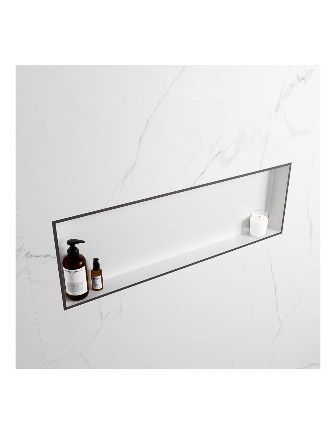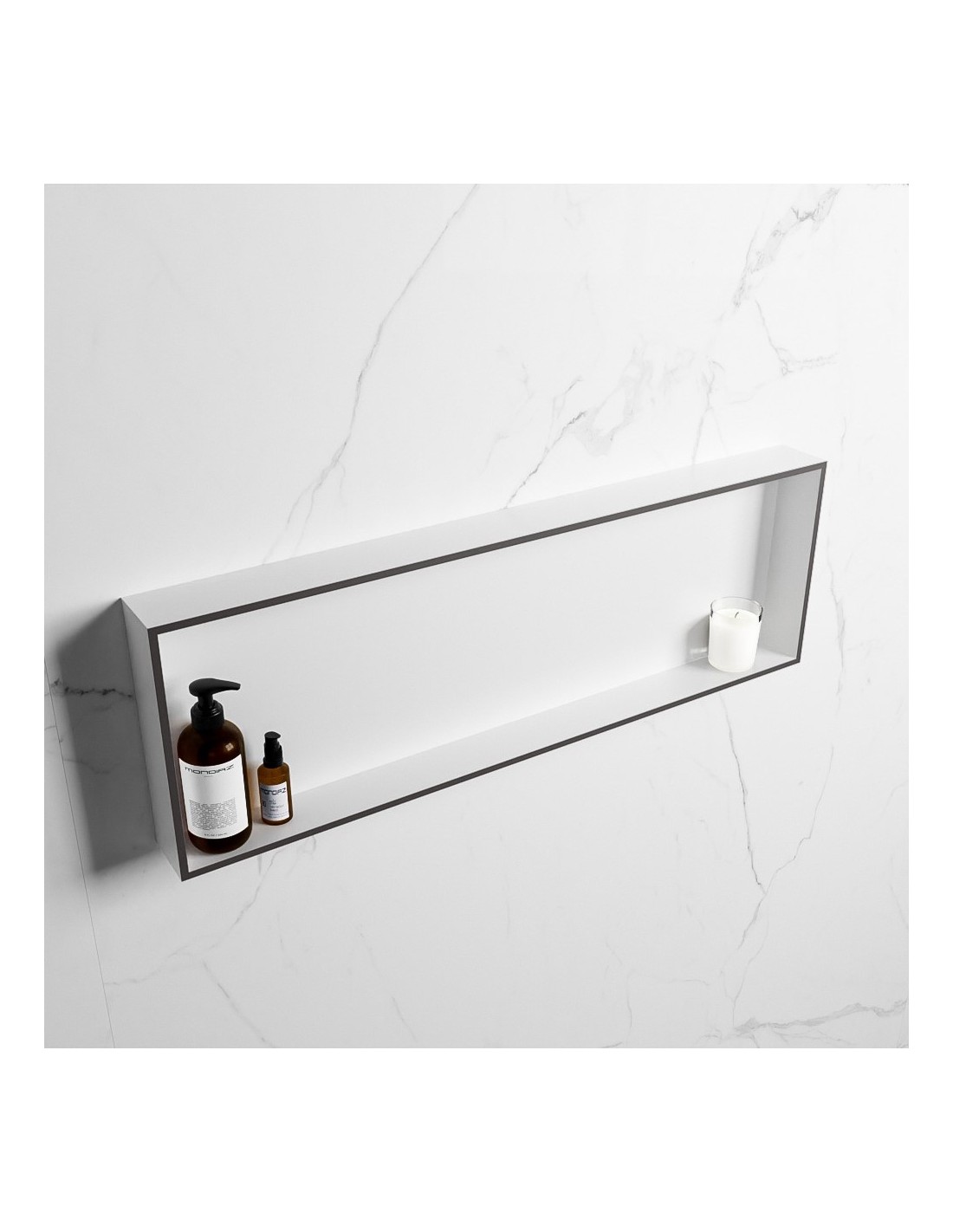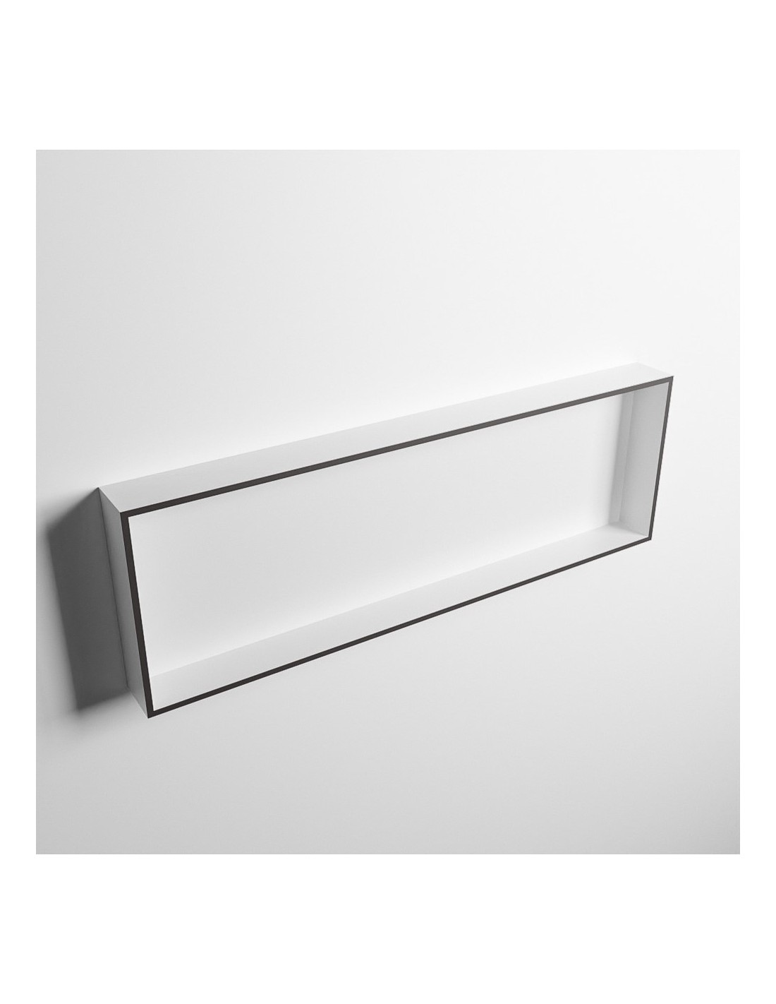 EASY hylde til badeværelset, udført i et moderne og stilrent design i det solide materiale "Solid Surface", der ikke alene giver badeværelset et stilrent design, men samtidig er lækkert at røre ved. Hylden kan enten monteres direkte på væggen, eller indbygges. Hylden måler 89,5 x 29,5 cm i højde og bredde (ydermål).
