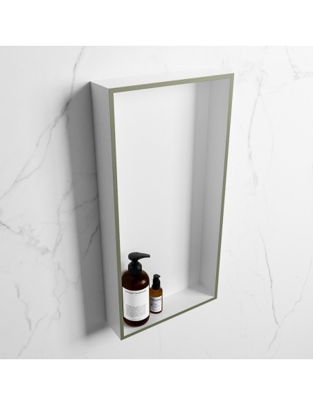 EASY hylde til badeværelset 59,5 x 29,5 cm Solid surface - Talkum/Armygrøn