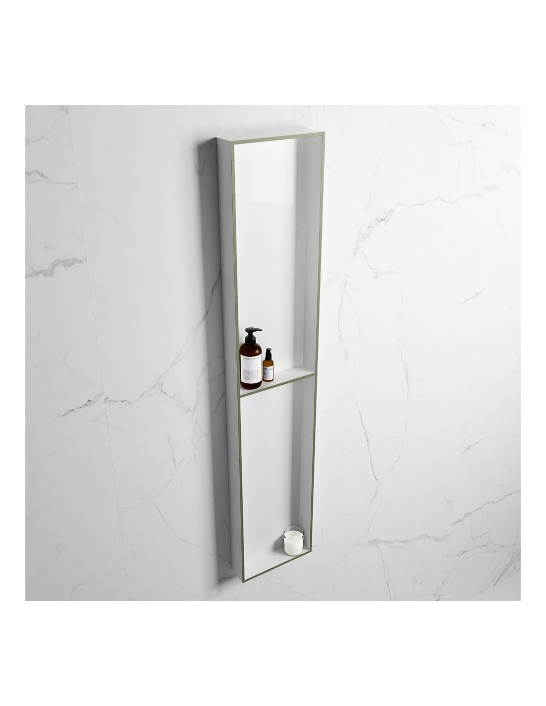 EASY hylde til badeværelset 149,5 x 29,5 cm Solid surface - Talkum/Armygrøn