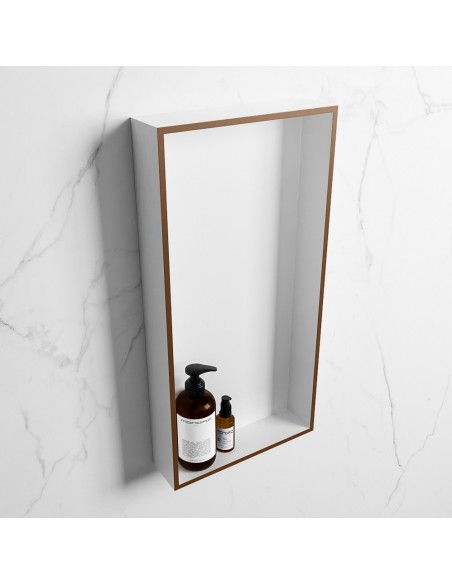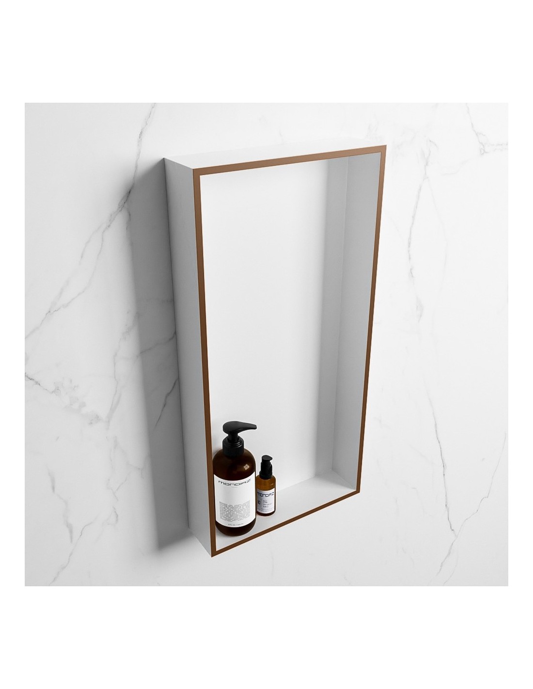 EASY hylde til badeværelset, udført i et moderne og stilrent design i det solide materiale "Solid Surface", der ikke alene giver badeværelset et stilrent design, men samtidig er lækkert at røre ved. Hylden kan enten monteres direkte på væggen, eller indbygges. Hylden måler 59,5 x 29,5 cm i højde og bredde (ydermål).