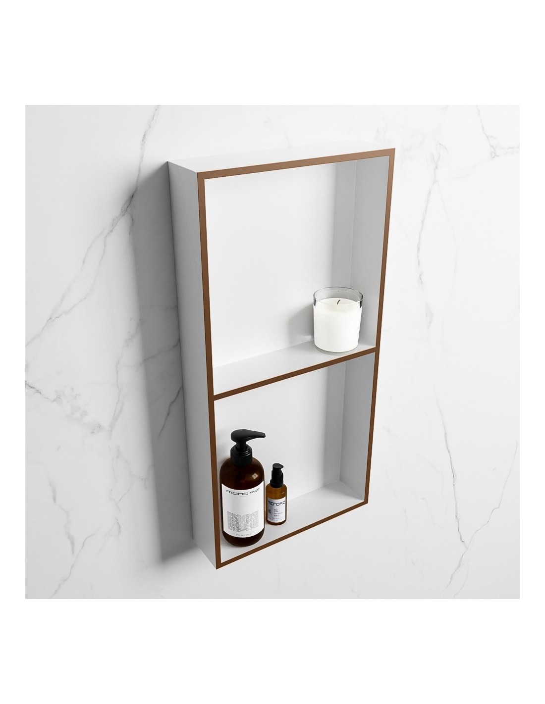 EASY hylde til badeværelset, udført i et moderne og stilrent design i det solide materiale "Solid Surface", der ikke alene giver badeværelset et stilrent design, men samtidig er lækkert at røre ved. Hylden kan enten monteres direkte på væggen, eller indbygges. Hylden måler 59,5 x 29,5 cm i højde og bredde (ydermål).