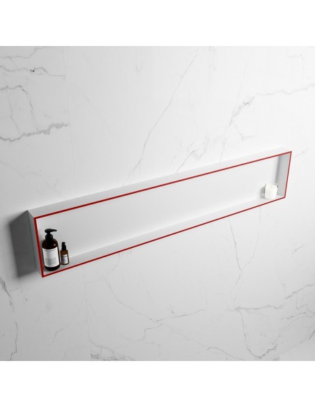 EASY hylde til badeværelset 149,5 x 29,5 cm Solid surface - Talkum/Rød