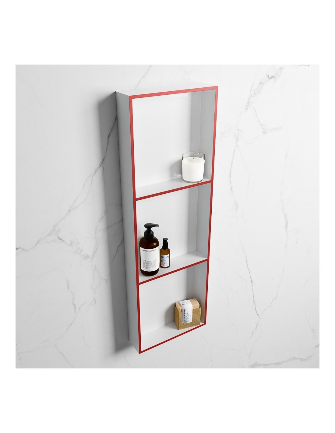 EASY hylde til badeværelset 89,5 x 29,5 cm Solid surface - Talkum/Rød
