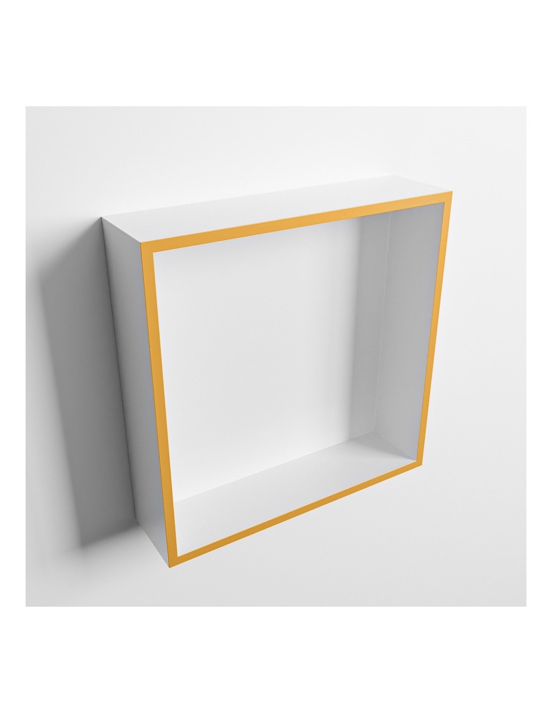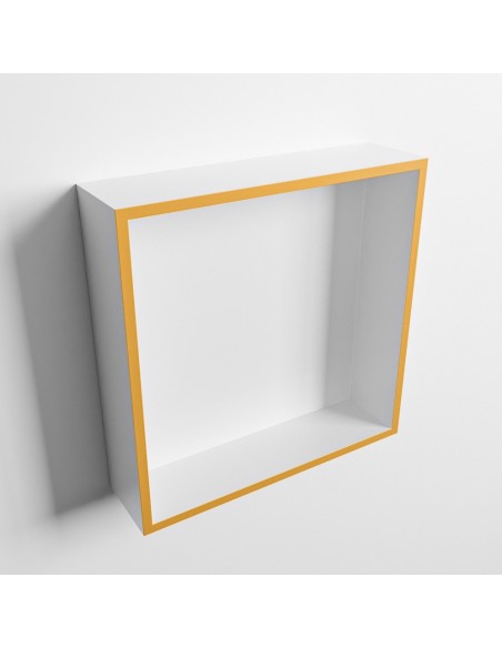 EASY hylde til badeværelset, udført i et moderne og stilrent design i det solide materiale "Solid Surface", der ikke alene giver badeværelset et stilrent design, men samtidig er lækkert at røre ved. Hylden kan enten monteres direkte på væggen, eller indbygges. Hylden måler 29,5 x 29,5 cm i højde og bredde (ydermål).