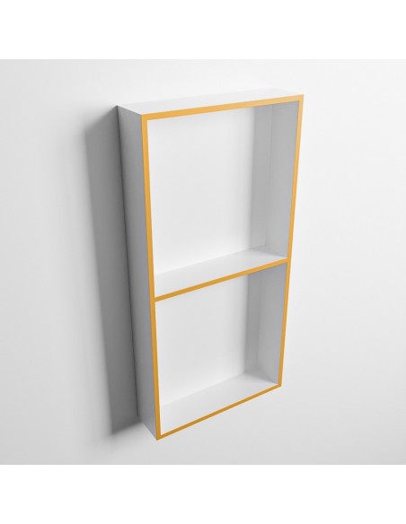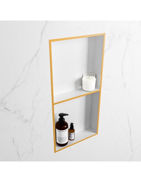 EASY hylde til badeværelset, udført i et moderne og stilrent design i det solide materiale "Solid Surface", der ikke alene giver badeværelset et stilrent design, men samtidig er lækkert at røre ved. Hylden kan enten monteres direkte på væggen, eller indbygges. Hylden måler 59,5 x 29,5 cm i højde og bredde (ydermål).