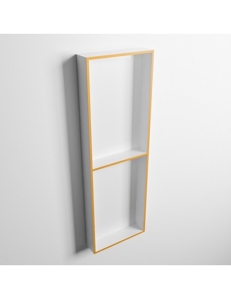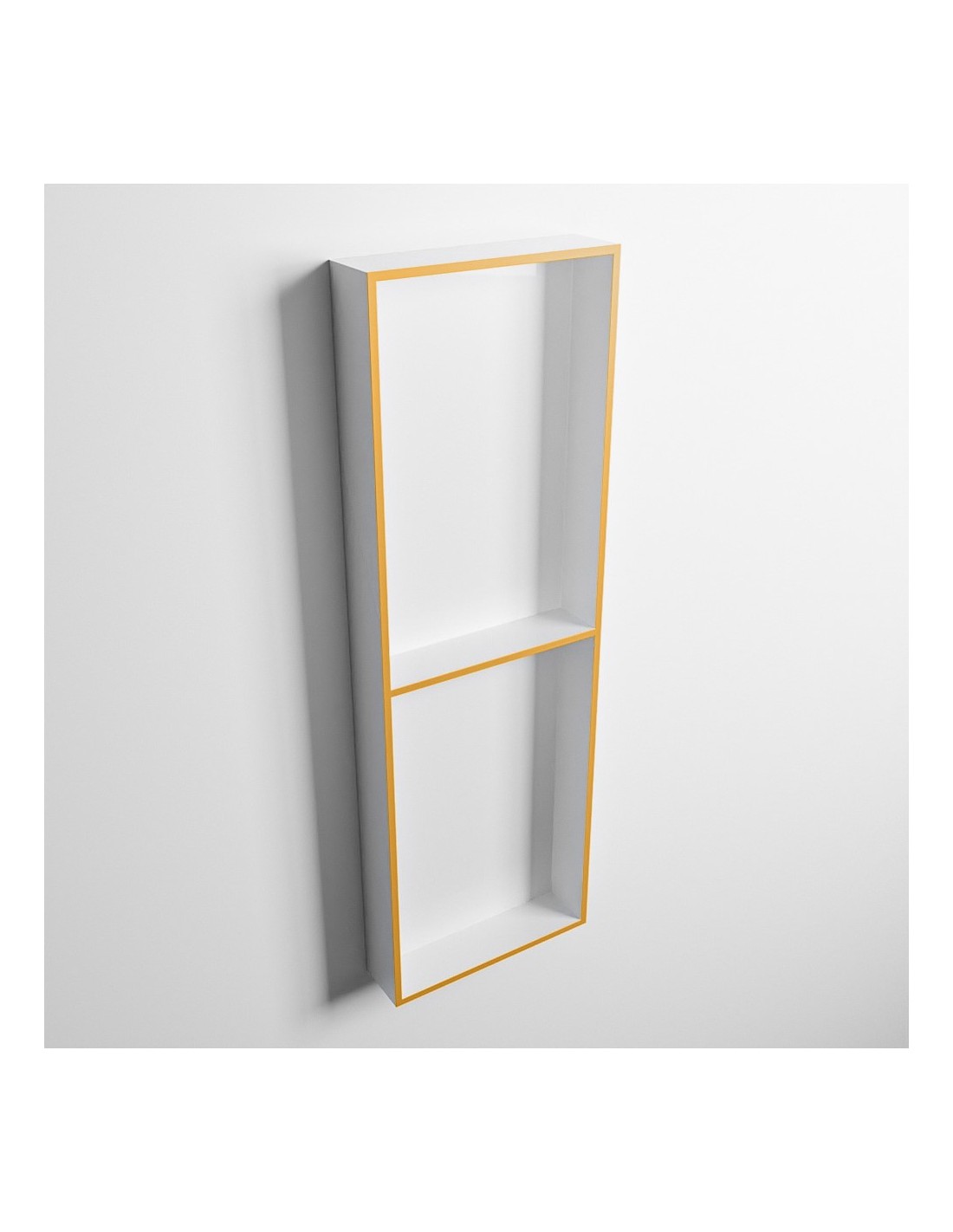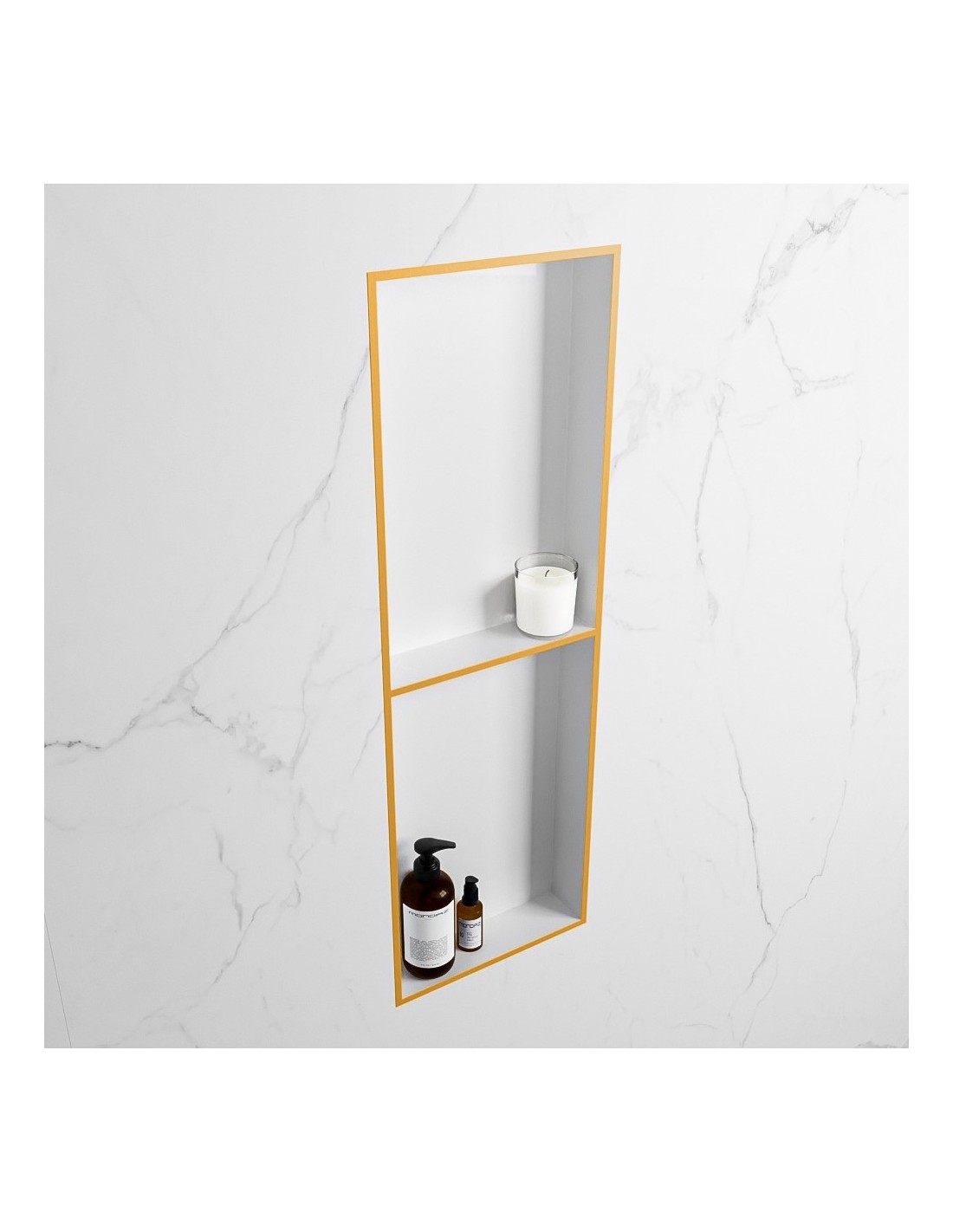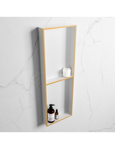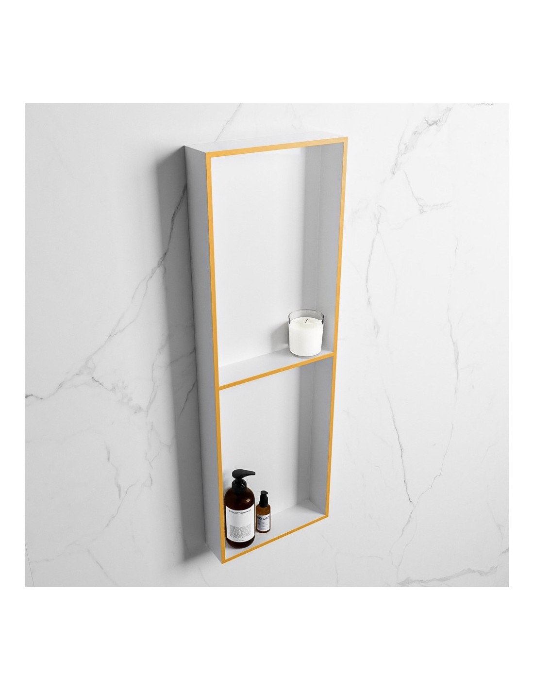 EASY hylde til badeværelset, udført i et moderne og stilrent design i det solide materiale "Solid Surface", der ikke alene giver badeværelset et stilrent design, men samtidig er lækkert at røre ved. Hylden kan enten monteres direkte på væggen, eller indbygges. Hylden måler 89,5 x 29,5 cm i højde og bredde (ydermål).
