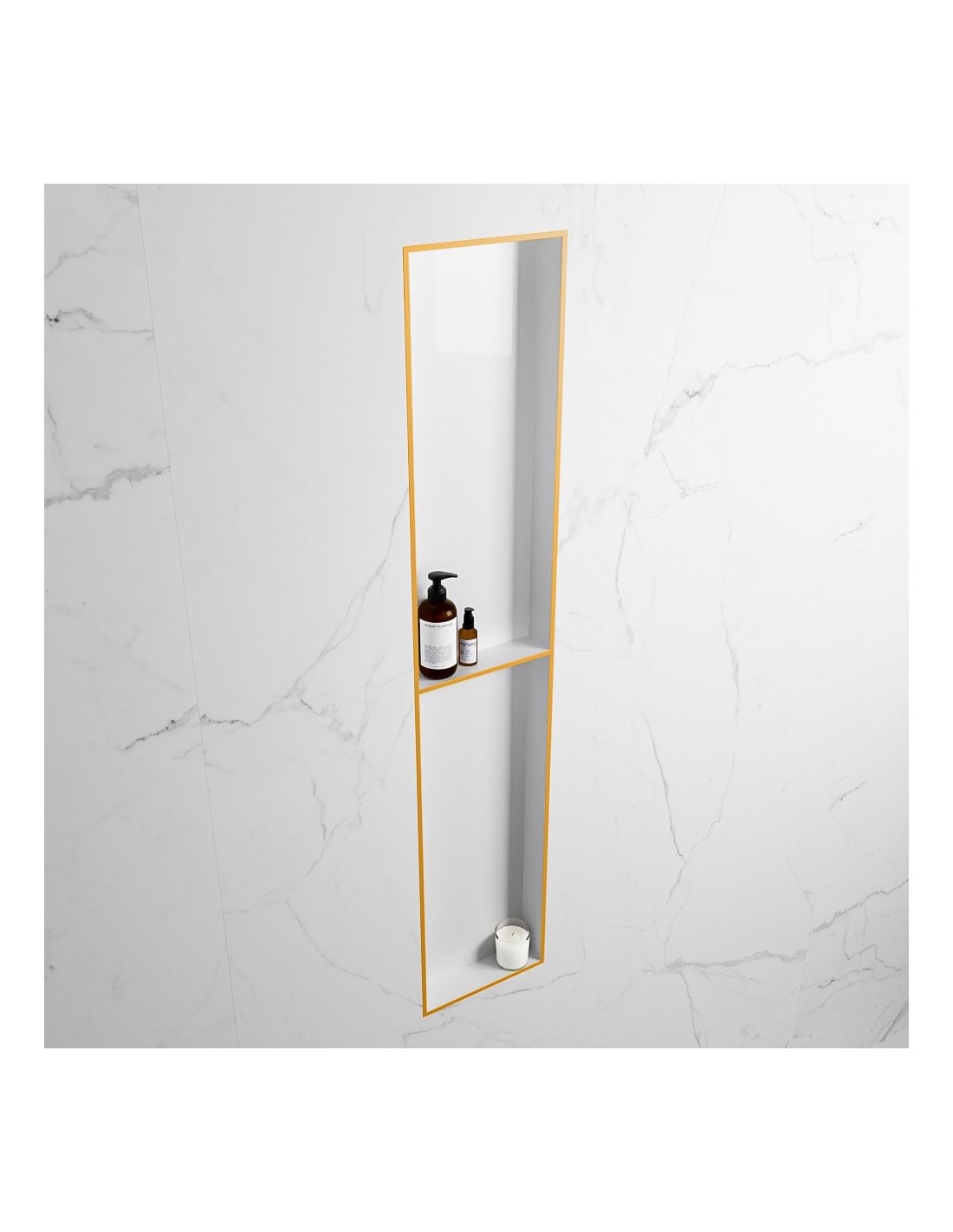 EASY hylde til badeværelset, udført i et moderne og stilrent design i det solide materiale "Solid Surface", der ikke alene giver badeværelset et stilrent design, men samtidig er lækkert at røre ved. Hylden kan enten monteres direkte på væggen, eller indbygges. Hylden måler 149,5 x 29,5 cm i højde og bredde (ydermål).