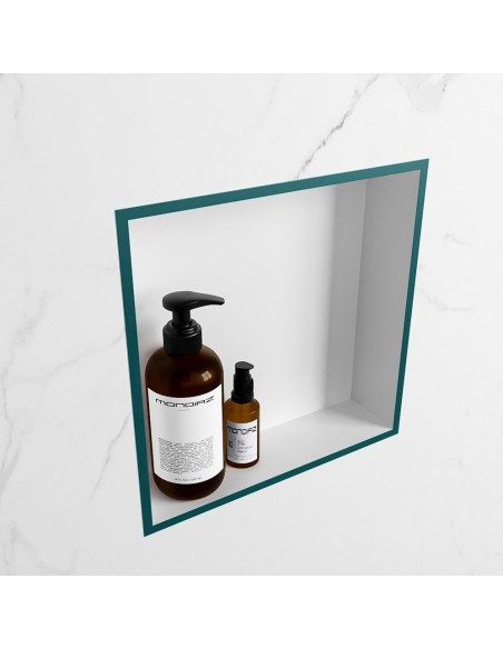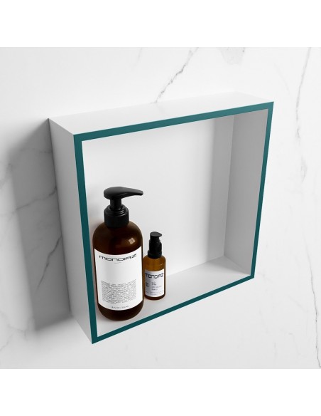 EASY hylde til badeværelset 29,5 x 29,5 cm Solid surface - Talkum/Petrolium