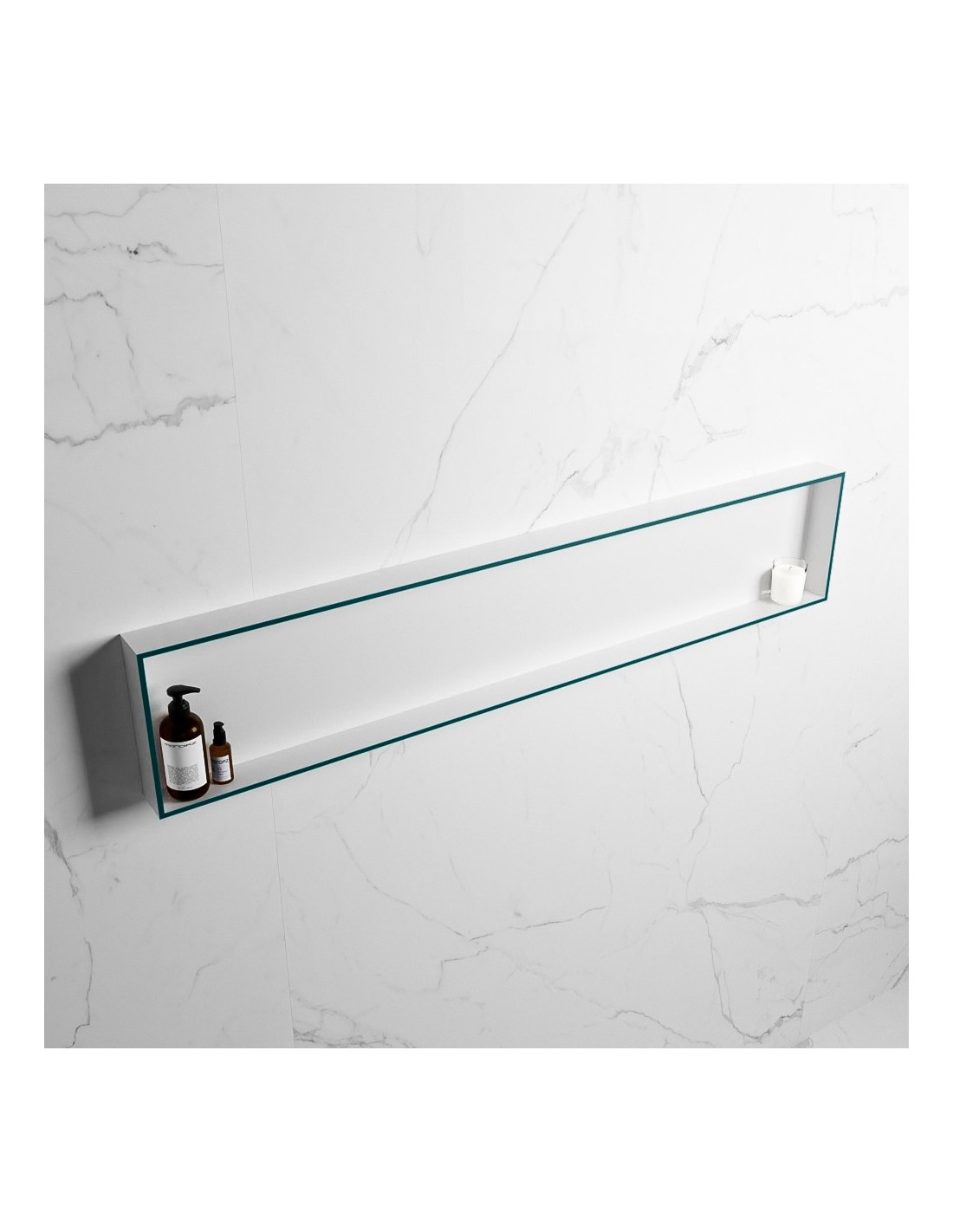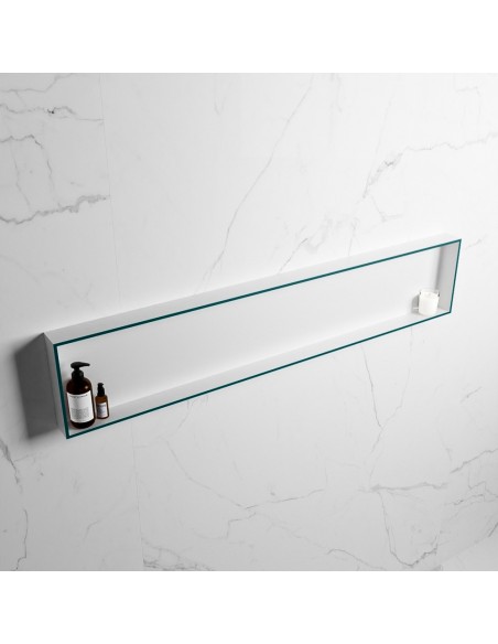 EASY hylde til badeværelset 149,5 x 29,5 cm Solid surface - Talkum/Petrolium