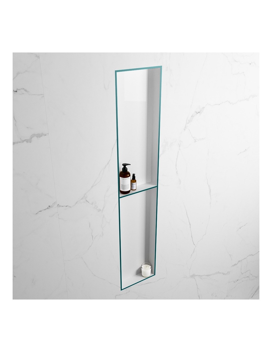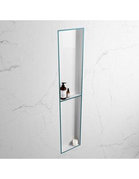 EASY hylde til badeværelset 149,5 x 29,5 cm Solid surface - Talkum/Petrolium