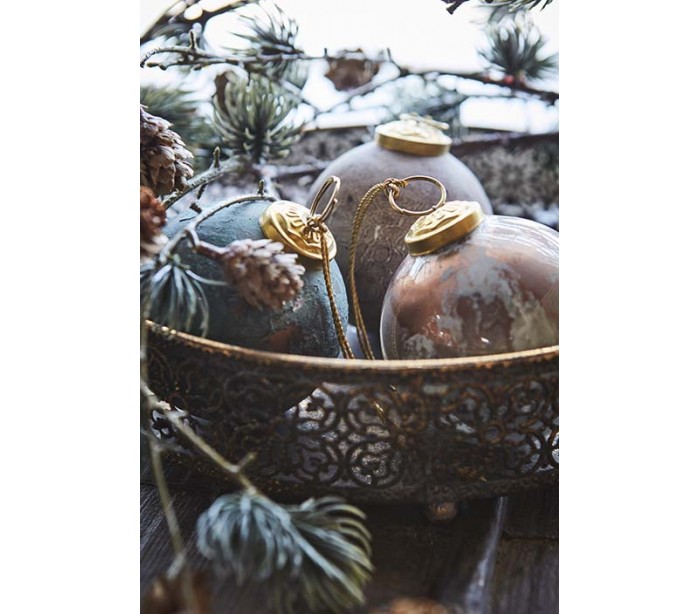 Julekugle i glas Ø7,5 cm - Antik bordeaux