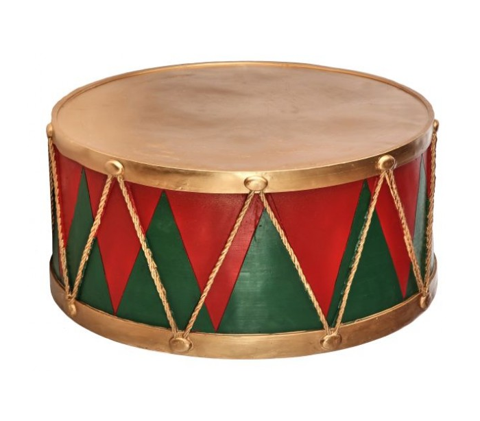 Tromme i et smukt udført design, fremstillet i antik rød og grøn polyresin. Figuren måler 53 cm i diameter.