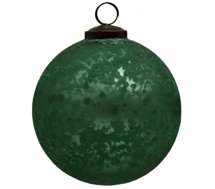Julekugle i design fremstillet i antik grøn glas. Glaskuglen måler 12 cm i diameter.