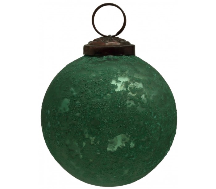 Julekugle i design fremstillet i antik grøn glas. Glaskuglen måler 8 cm i diameter.