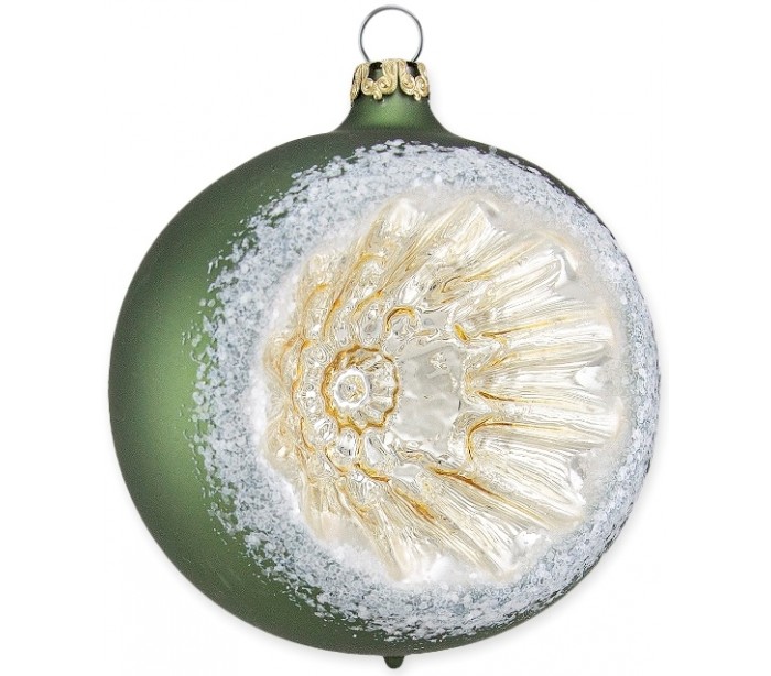 Julekugle i mundblæst glas Ø8 cm - Mat mørkegrøn med reflektor