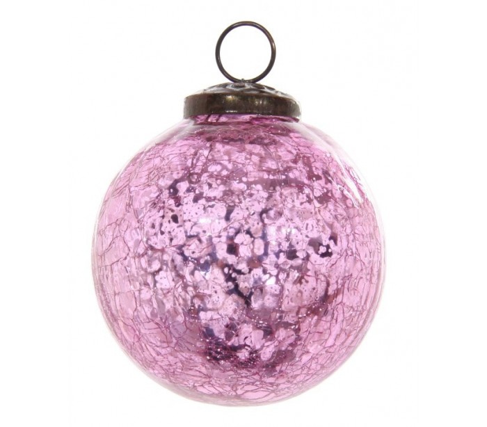Julekugle fremstillet i et design af pink krakeleret glas og med en diameter på 7 cm.