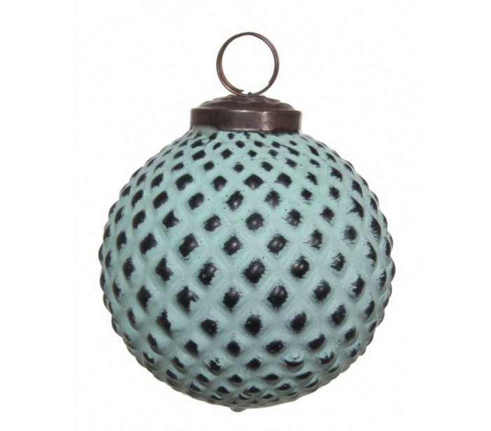 Julekugle fremstillet i et design af antik grønt glas og med en diameter på 7,5 cm.