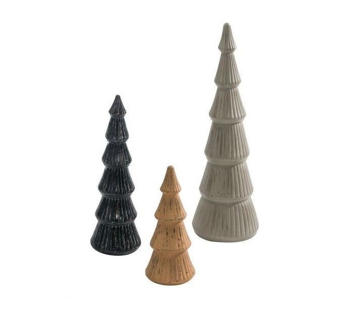 Sæt af 3 juletræer udført i et rustikt design og med en højde på cirka 24, 36 og 48 cm. En sæt der pynter på både reol og skænk.