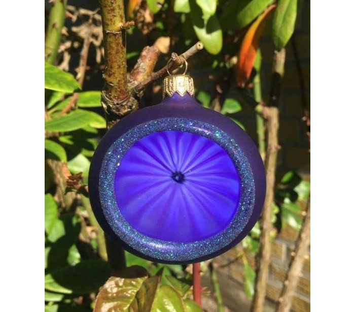 Retro julekugle med reflektor i glas Ø7 cm - Blå