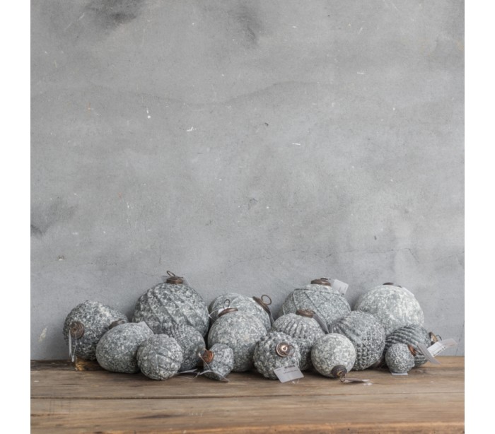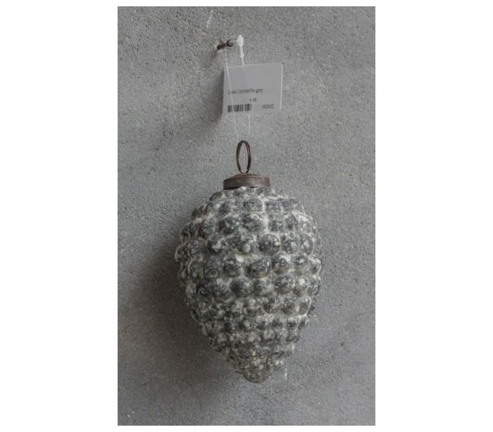 Julekugle i et smukt design, fremstillet i glas, og med en flot effekt af marmor grå. Kuglen måler 10 cm i højden.