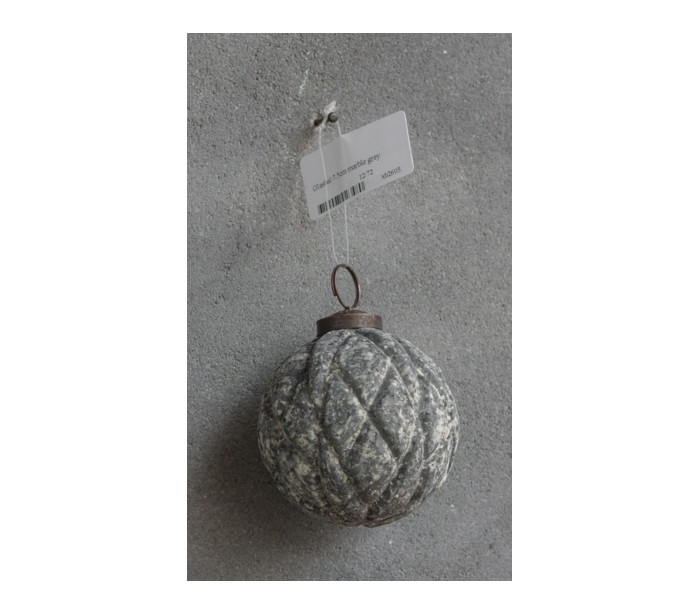 Julekugle i glas Ø7,5 cm - Marmor grå