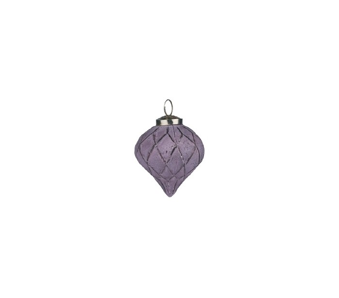 Julekugle udført i et antikt design af lilla og med diameter på 7,5 cm. Kuglen er udført i glas, og kommer fra Homeart by Bahne.