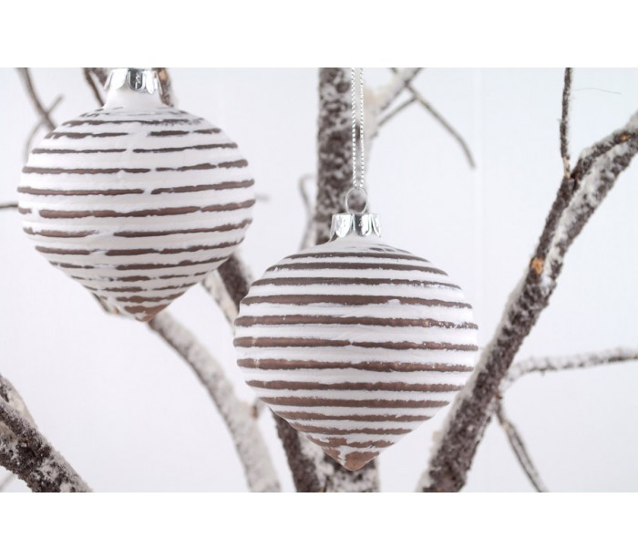 Julekugle i glas Ø8 cm - Grå/Hvid