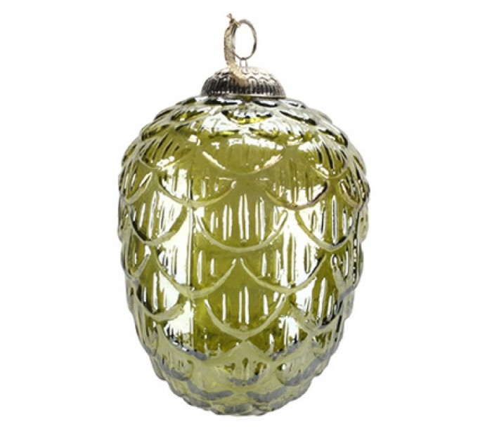 Juleophæng udført i et smukt og dekorativt design af grønt glas, og med højde på 18 cm og diameter på 13 cm.