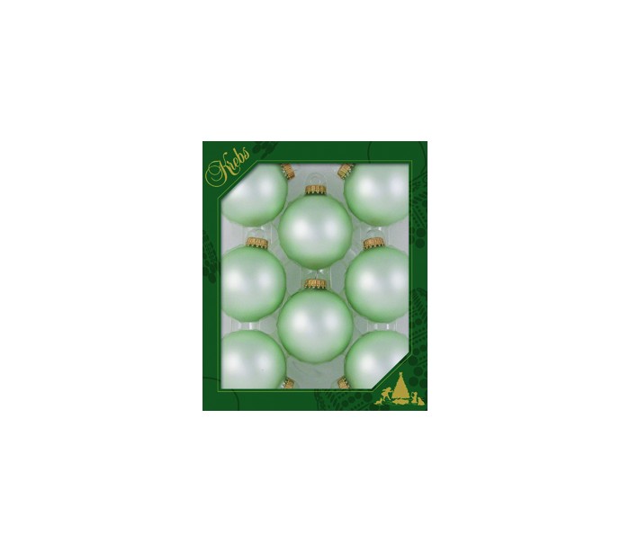 Sæt med 8 julekugler fra tyske Krebs, udført i et smukt og dekorativt design af grønt glas. Kuglerne måler 6,7 cm i diameter.