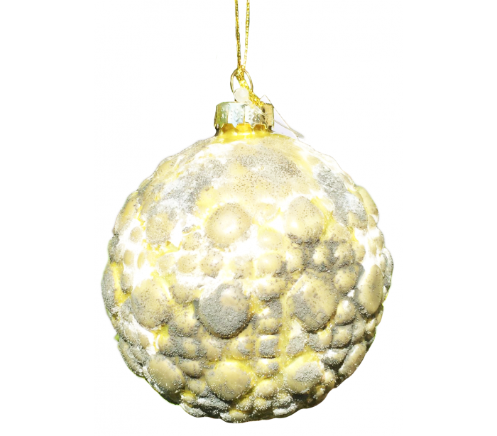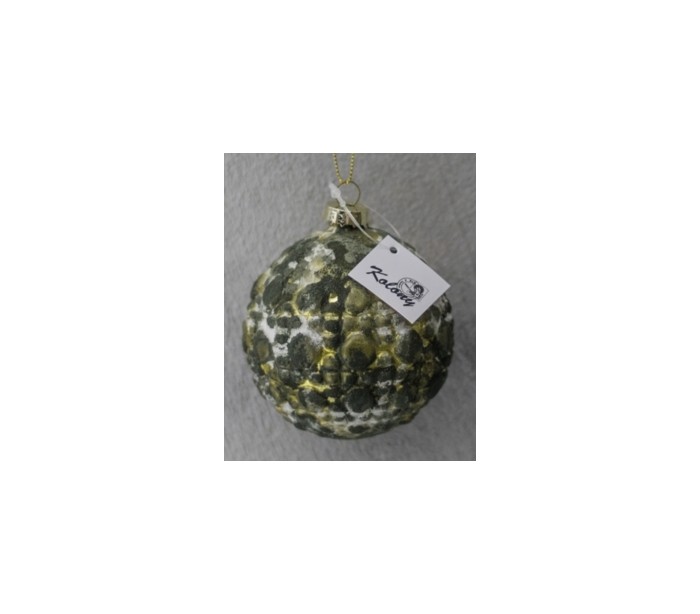 Julekugle udført i et smukt design af antik mosgrøn. Glaskuglen måler 8 cm i diameter.