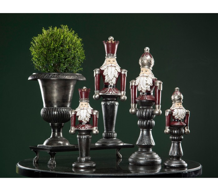 Nøddeknækker soldat i et smukt udført design, fremstillet i antik rød polyresin. Figuren måler 40 cm i højden og sælges assorteret.