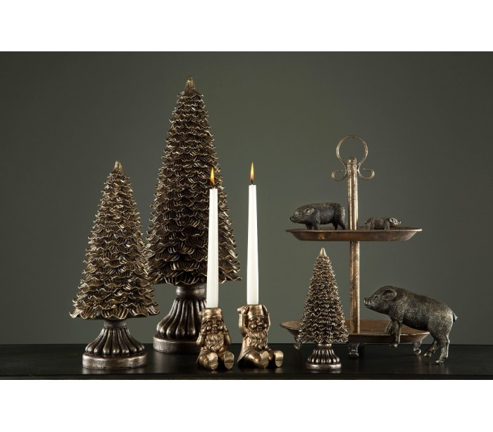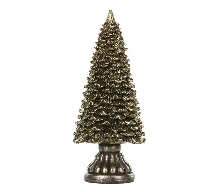 Juletræ i et smukt udført design, fremstillet i antik champagne farvet polyresin. Træet måler 23,5 cm i højden og 10 cm i diameter.