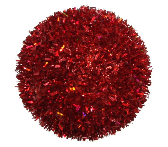 Julekugle i et moderne design, fremstillet i kunststof, og med en flot effekt af rød glimmer, der skinner flot når lyset falder på kuglens overflade. Kuglen måler 6 cm i diameter.