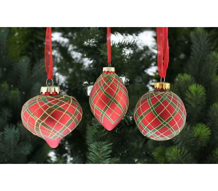 Julekugle i glas Ø6-9 cm assorteret - Tartan