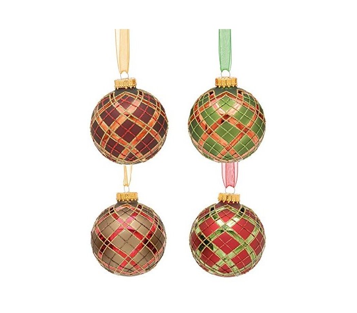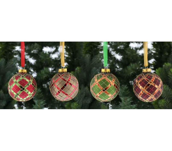 Julekugle udført i et smukt design af tartanfarvet glas, med en diameter på 8 cm. Sælges assorteret.
