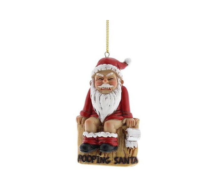 Pooping Santa juleophæng i et design udført i polyresin. Ophænget måler cirka 10 cm i højden.