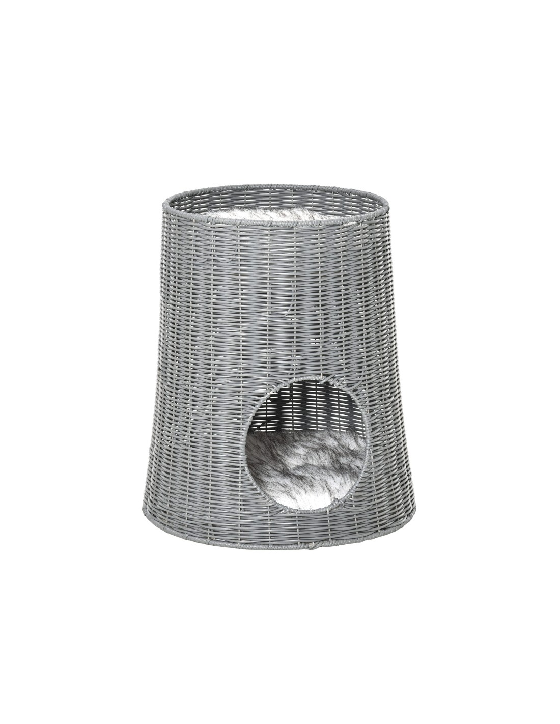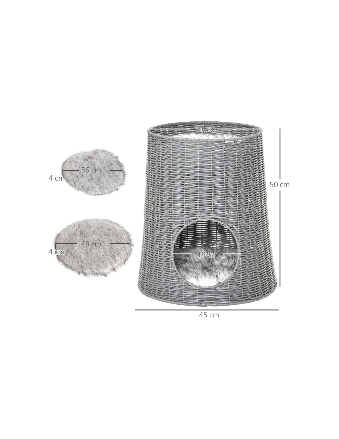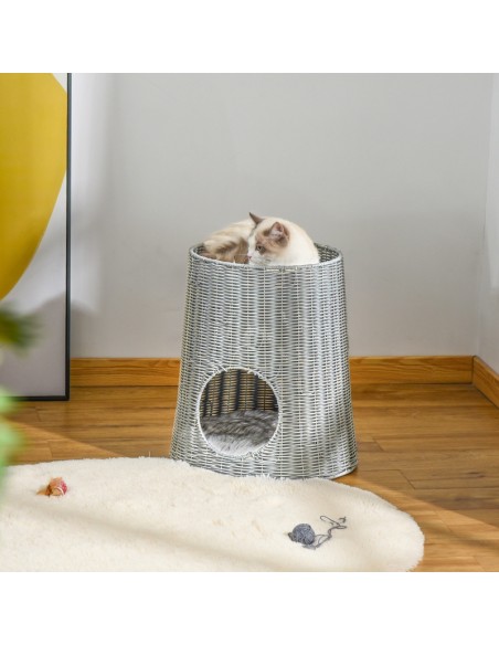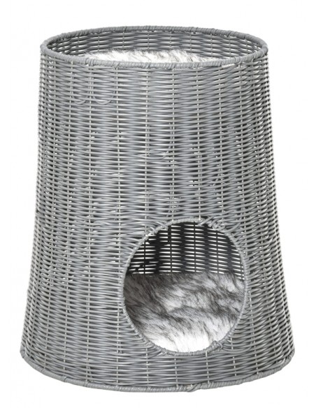 Katteseng udført i et design af polyrattan og polyester. Kattesengen måler 50 cm i højden og 45 cm i bredde og dybde. Vi anbefaler ikke at sengen står udendørs når der er fugt eller regnvejr.