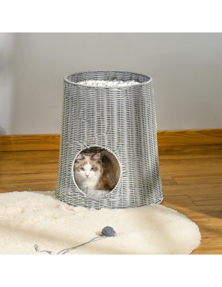 Katteseng i polyrattan og polyester 45 x 45 x 50 cm - Grå
