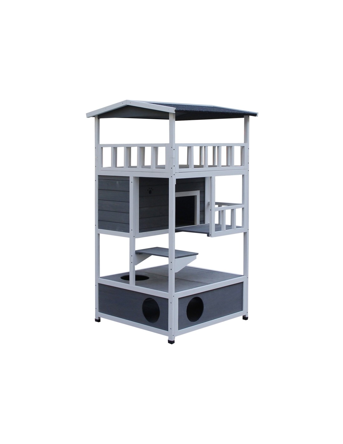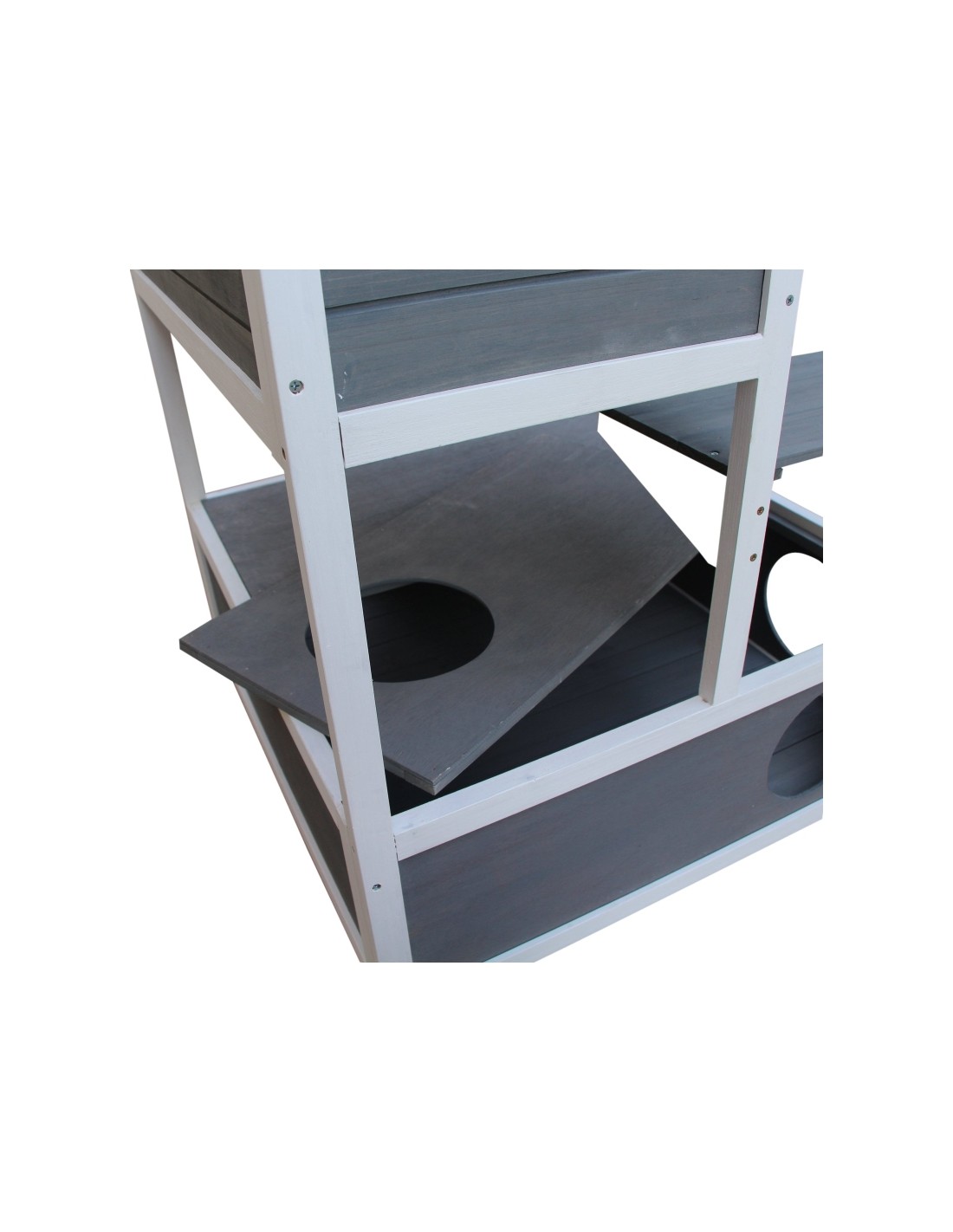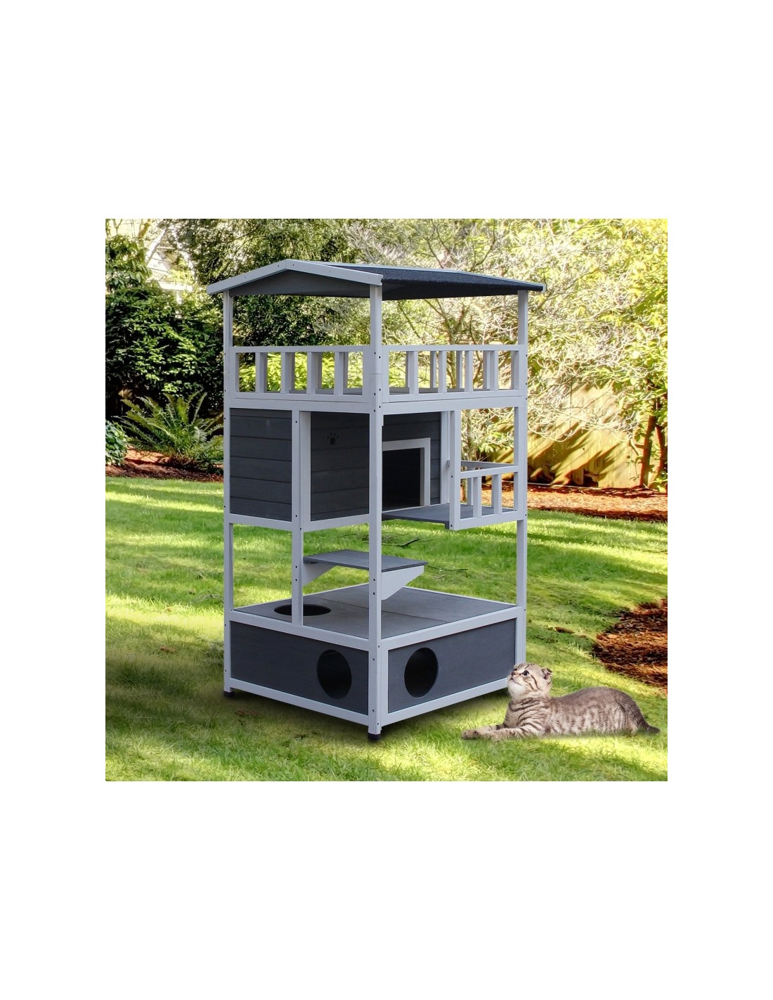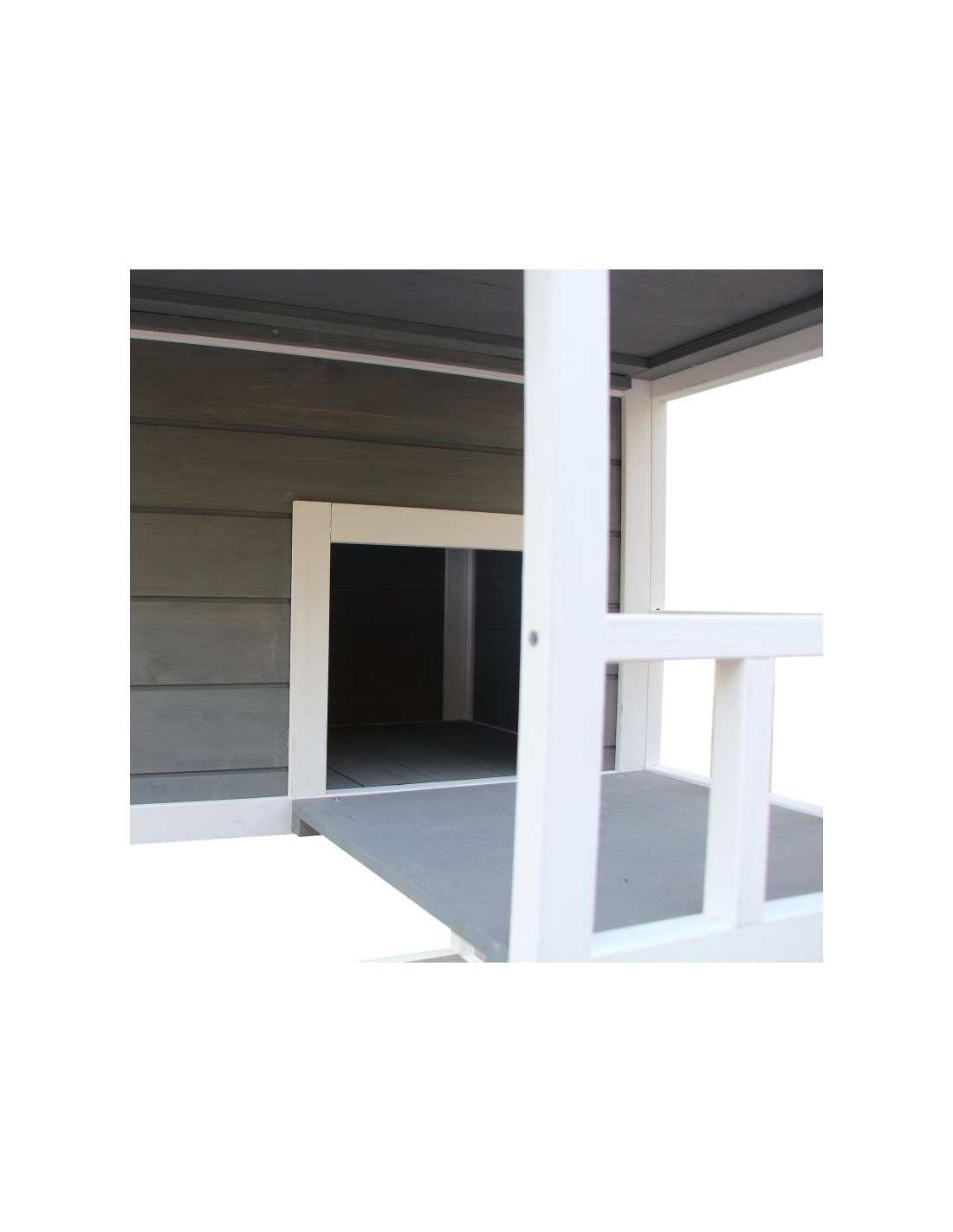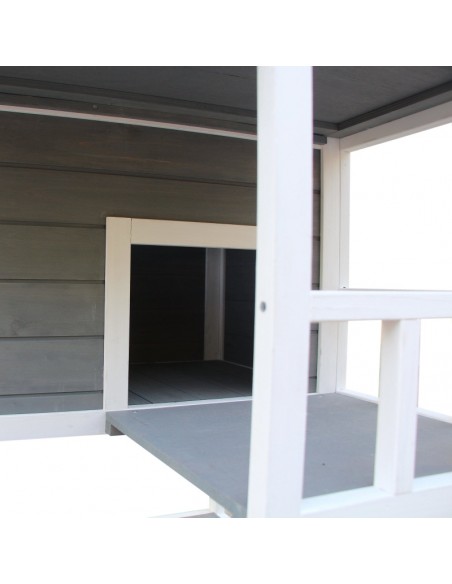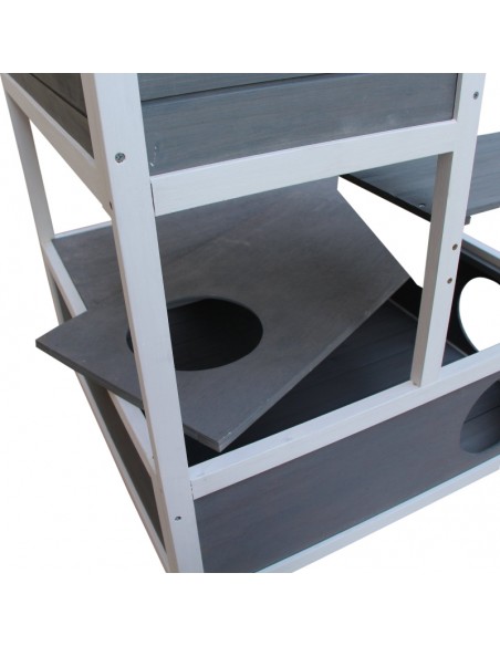 Kattehus i fyrretræ 78 x 76 x 140 cm - Hvid/Grå