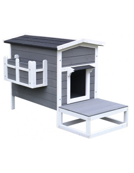 Kattehus i fyrretræ 115 x 66,5 x 74,7 cm - Hvid/Grå