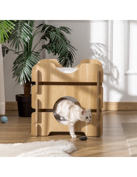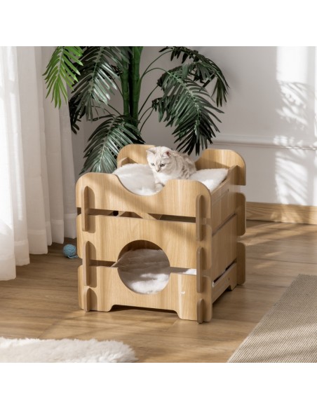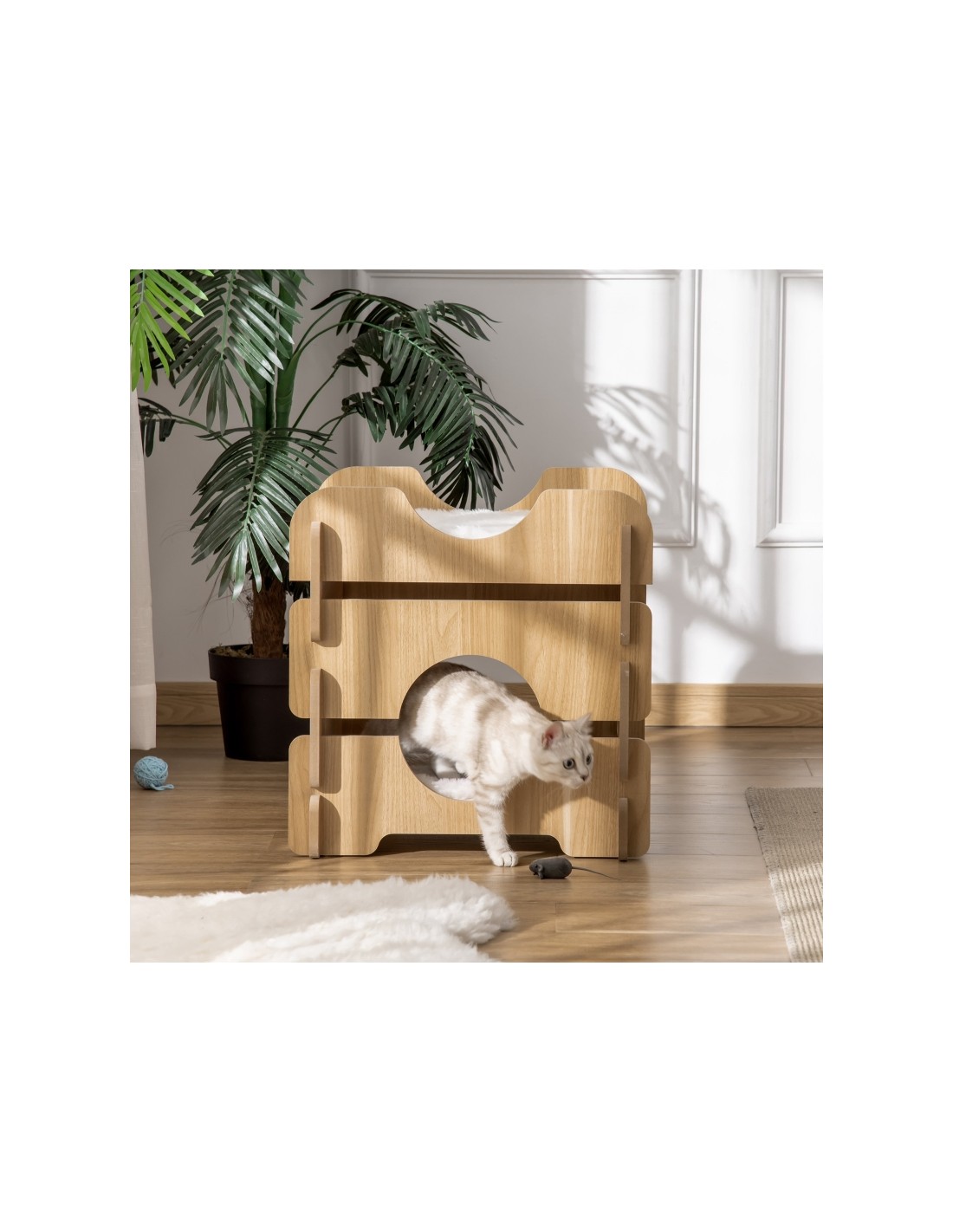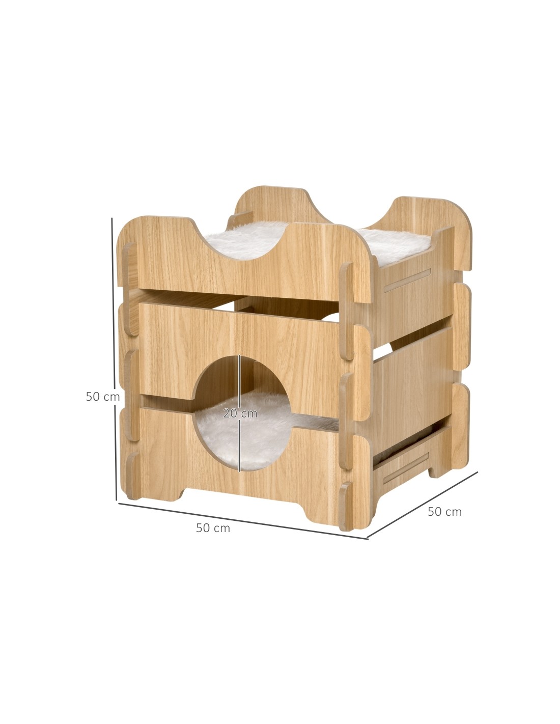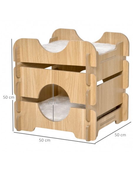Kattehus i møbelplade 50 x 50 x 50 cm - Natur