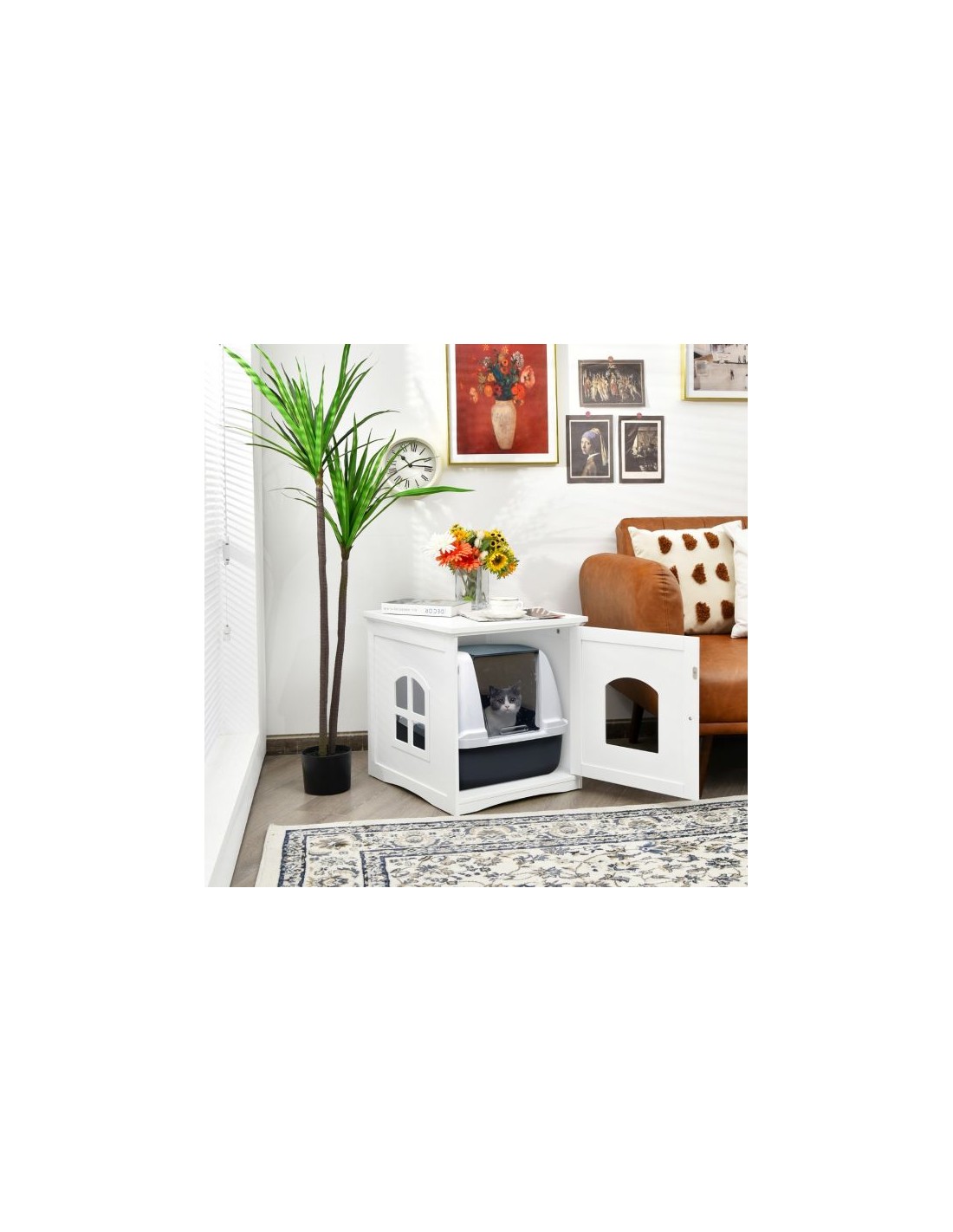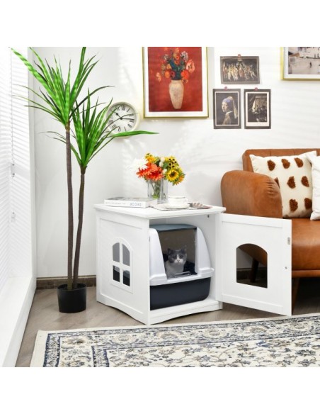 Kattehus i træ H53 x B49 x D53 cm - Hvid