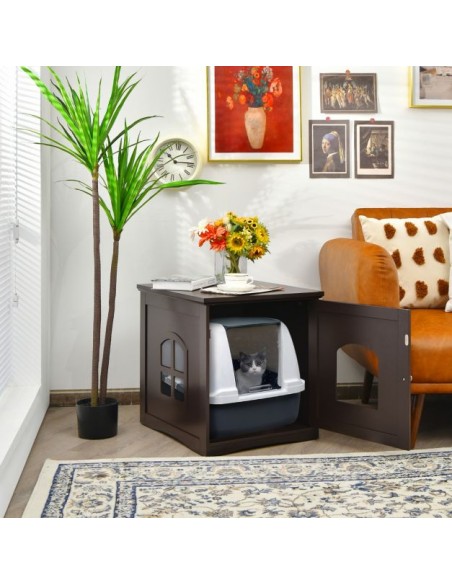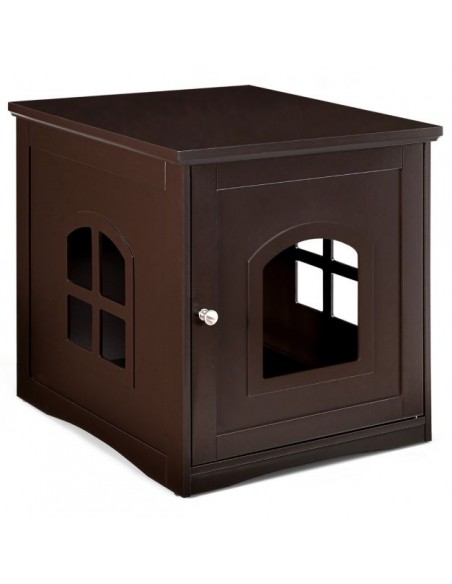 Kattehus i træ H53 x B49 x D53 cm - Brun