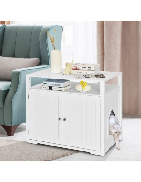 Kattehus i træ H71 x B80 x D53,5 cm - Hvid