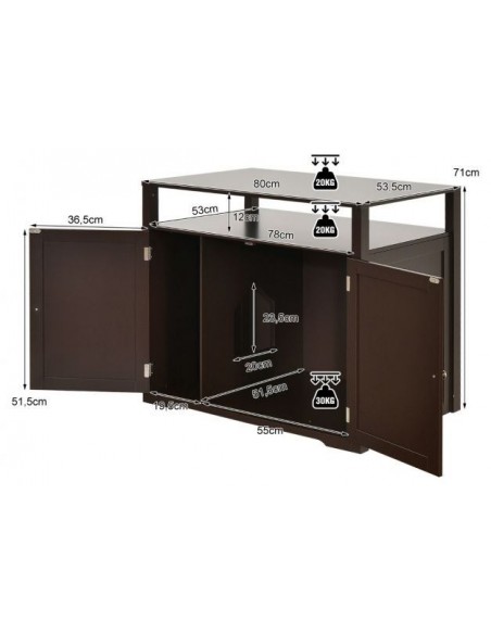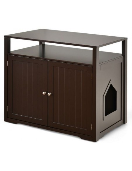 Kattehus udført i et design af træ. Kattehuset måler 71 cm i højden og 80 x 53,5 cm i bredde og dybde. Vi anbefaler ikke at møblet står udendørs når der er fugt eller regnvejr.