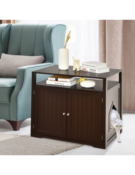 Kattehus i træ H71 x B80 x D53,5 cm - Brun