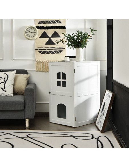 Kattehus i træ H90,5 x B50 x D60 cm - Hvid